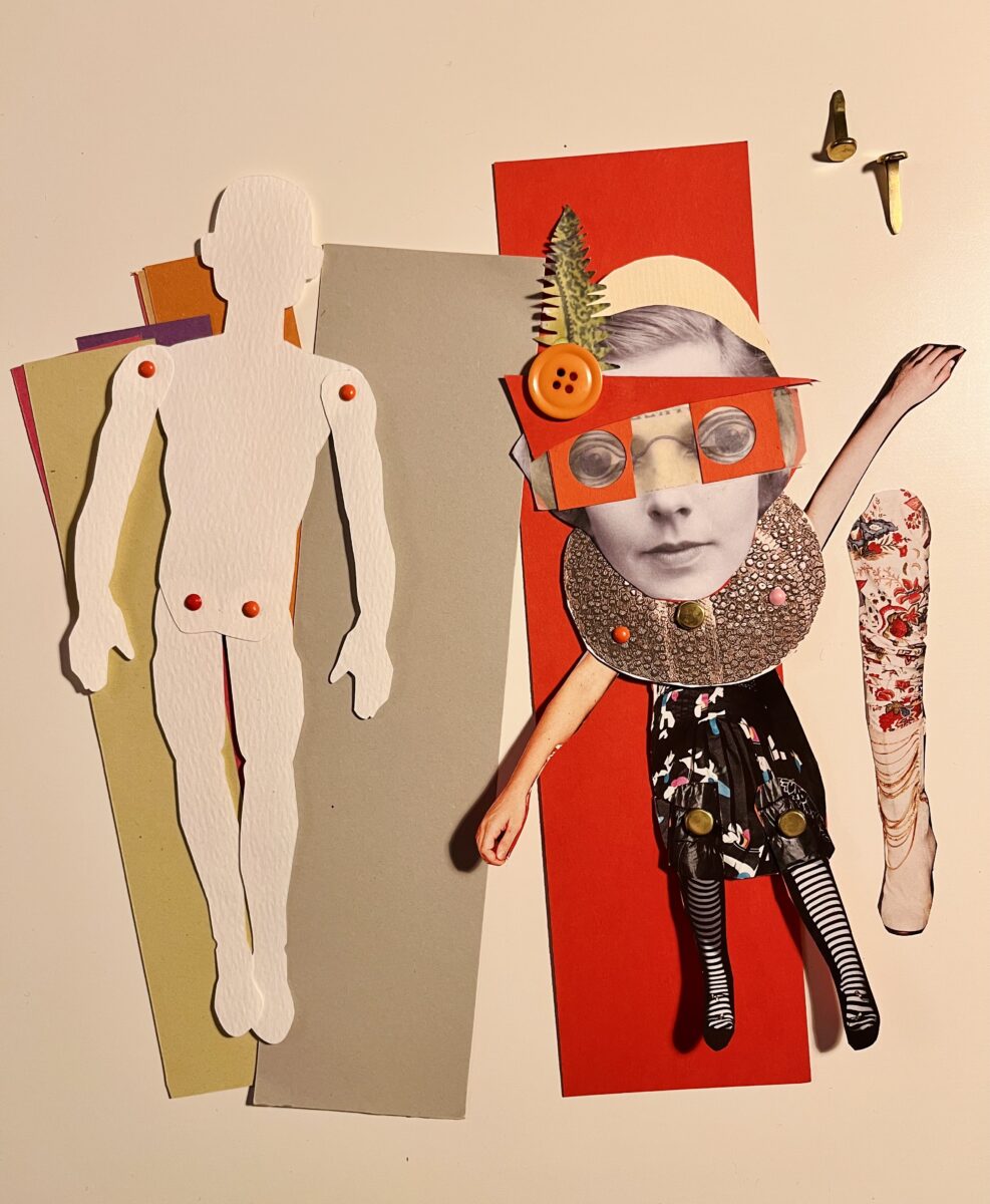 In this playful, hands-on workshop, you’ll design and create your own articulated puppet using collage techniques. Working with cut-out shapes, mixed papers, found imagery and simple fastenings, you’ll assemble a character with movable limbs and expressive details. Once your puppet is complete, you’ll have the chance to photograph it in different poses, bringing your creation to life through movement and imagination.