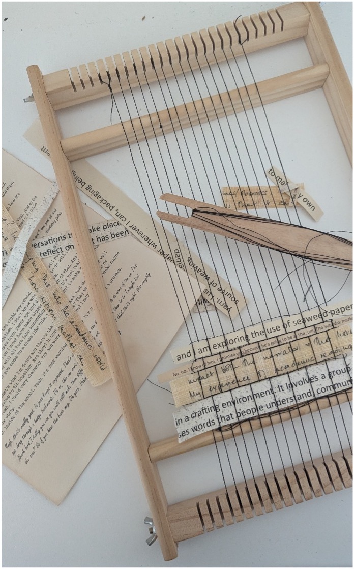 To celebrate the close of the “Out of Paper” Exhibition on its final day, come and see Jane weaving in the Gallery. Jane is available to chat about weaving and her work. She also invites you to write a message to add to the community weave.