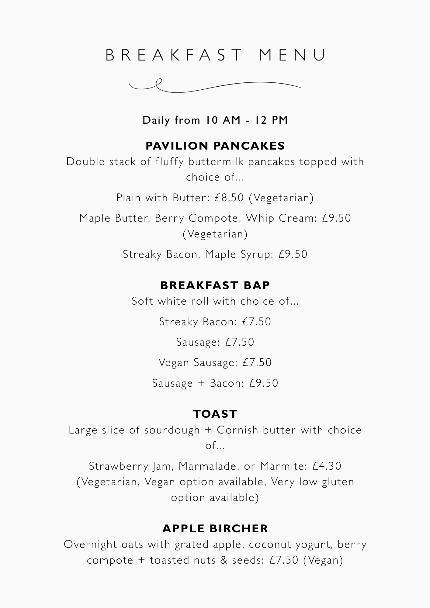 Breakfast is served from 10 AM – 12 PM